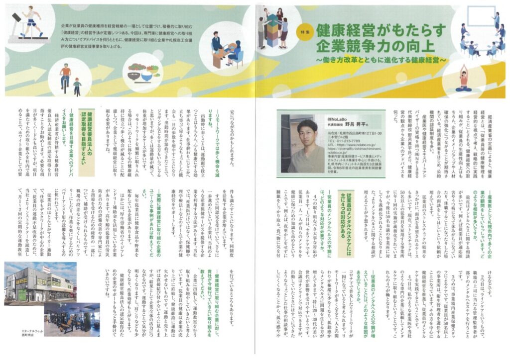 企業の健康経営についての考え方など特集として2ページにわたり掲載されています。